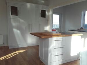 Larder and Island unit combo just complete to freshen up existing kitchen – light grey spray finish